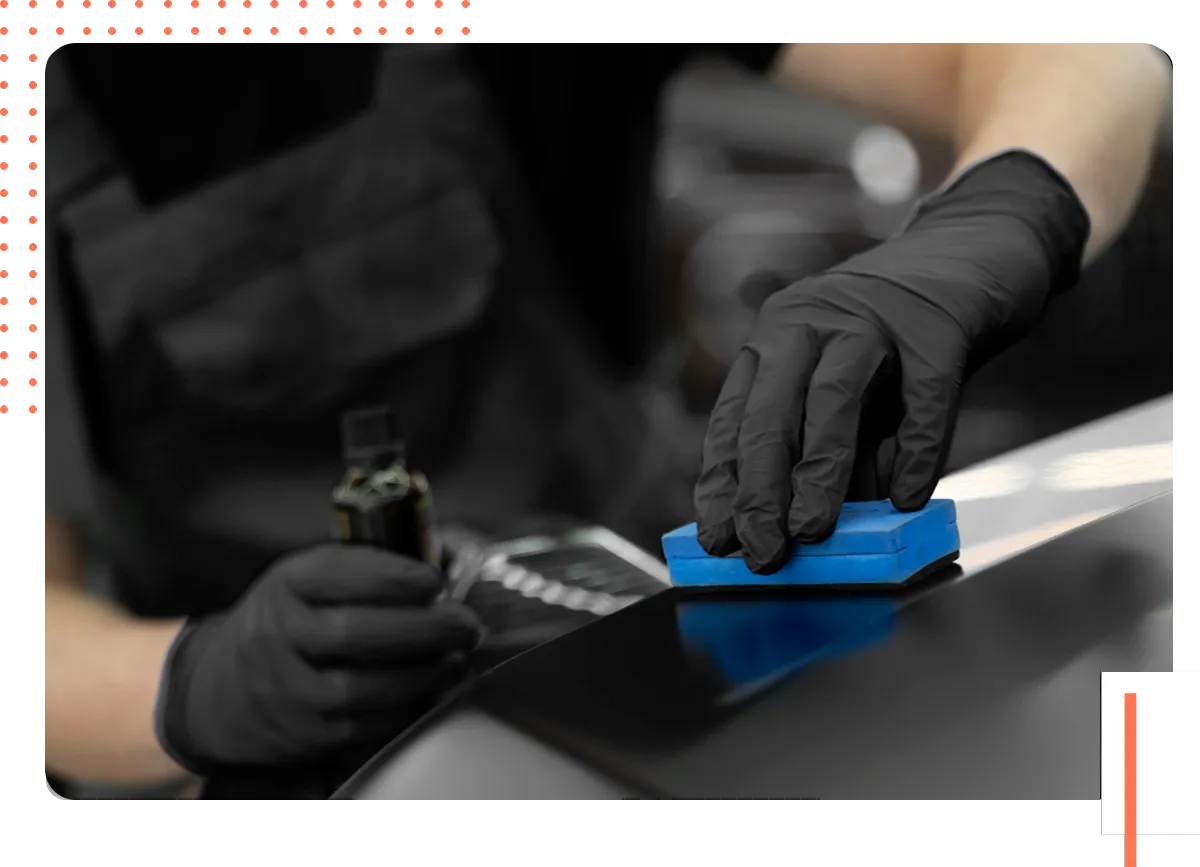 Controlled wet sanding and touch-up process to smooth imperfections, blend paint and eliminate visible marks.